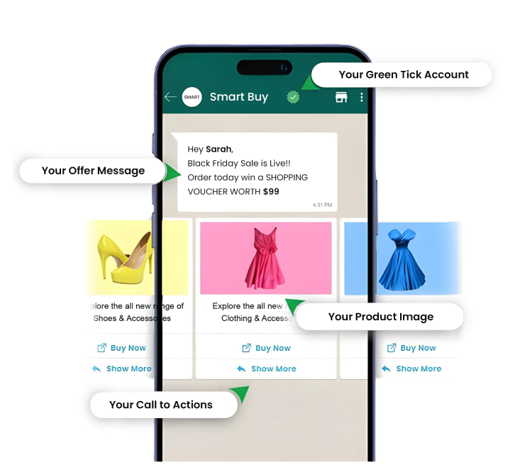 - Send promotional offers to unlimited WhatsApp users with one click.